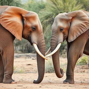 An elephant’s trunk is like a super-powered Swiss Army knife—it can grab food, spray water, and even give hugs! When two elephants wrap their trunks together, it’s like: