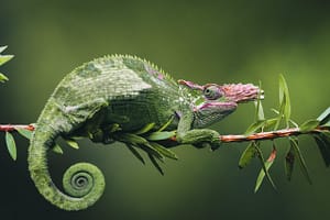 A chameleon is a special kind of lizard that lives in warm places like Africa and parts of Asia. They’re known for: